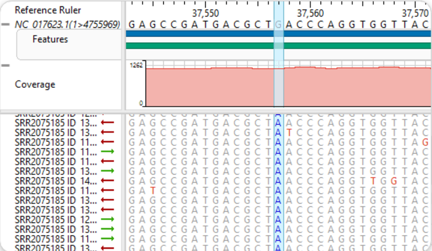 点击【Align】启动比对流程,系统将生成比对图谱与差异统计表,用户可通过色彩区分突变位置、缺口区域及一致性片段